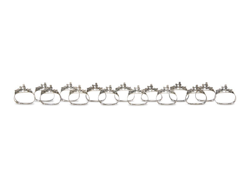A Set of Fifteen German Silver Napkin Rings