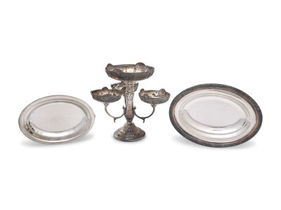 A Silver-Plate Centerpiece and Two Silver-Plate Serving Dishes