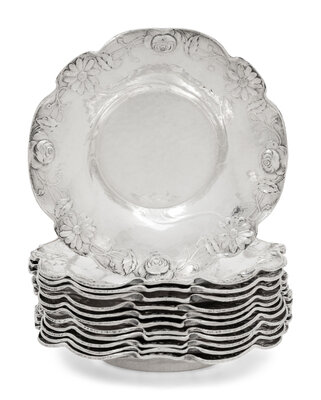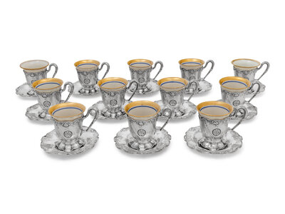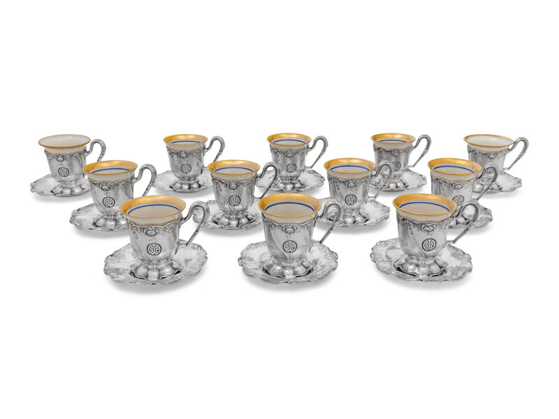 A Set of Twelve American Silver Martelé Coffee Cups and Saucers