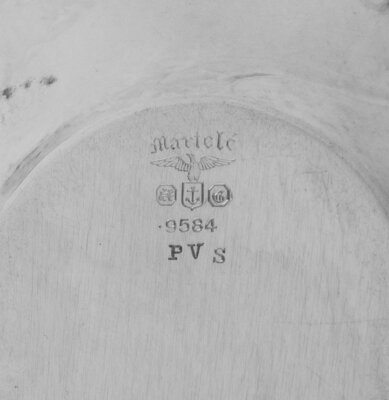 each marked 'Martelé' and for 95.84 percent silver purity; the cups marked 'PVR' and the saucers marked 'PVS'