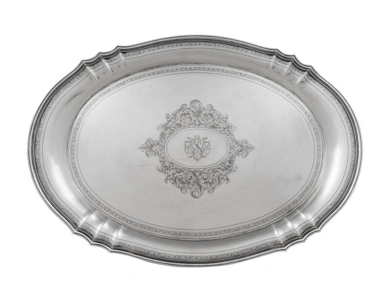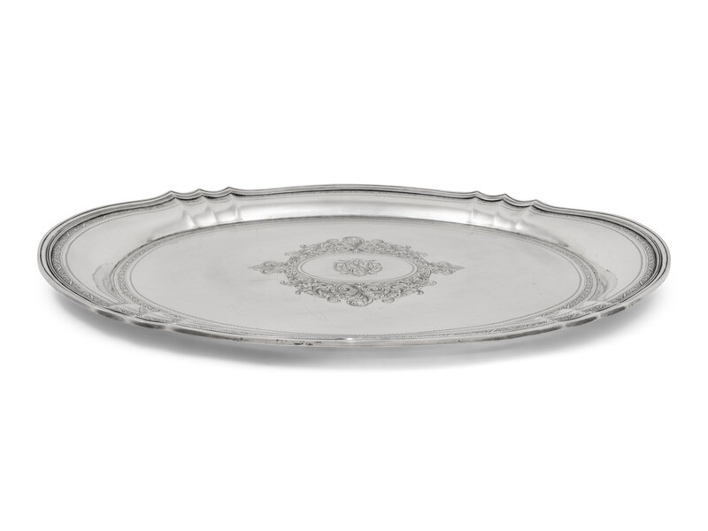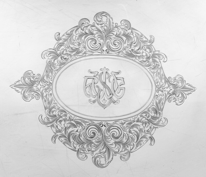 centered with an engraved monogram within an oval and foliate decorated cartouche.
