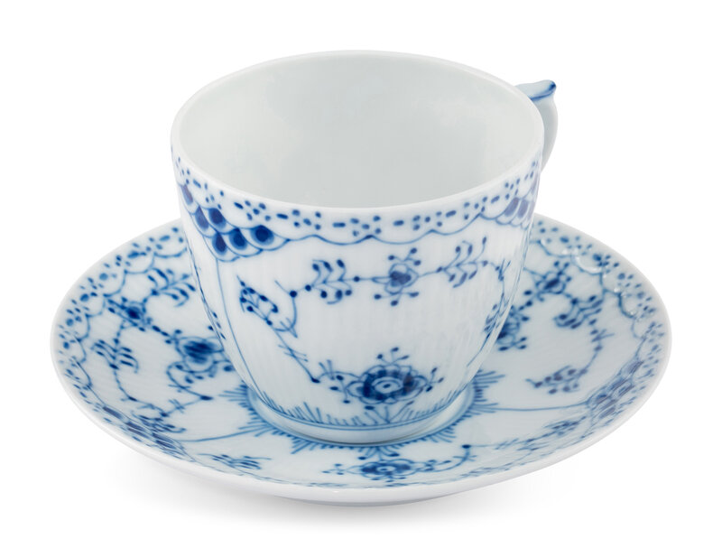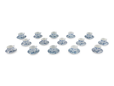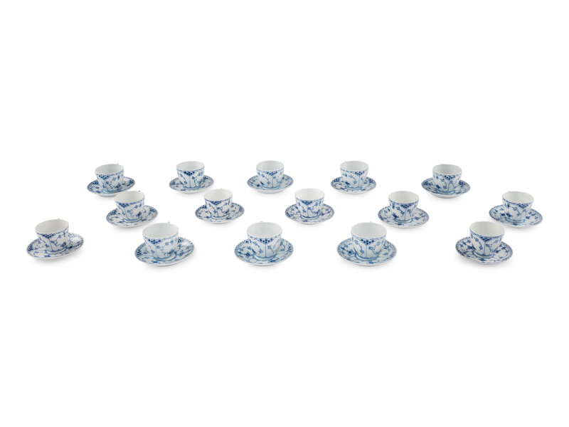 A Group of Royal Copenhagen Blue Fluted Teacups and Saucers