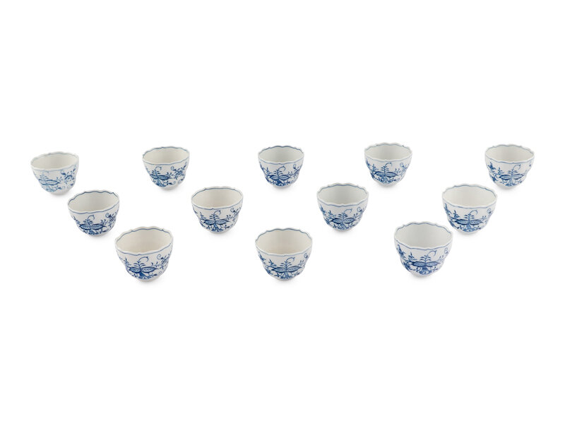 A Group of Meissen Blue Onion Teacups and Saucers