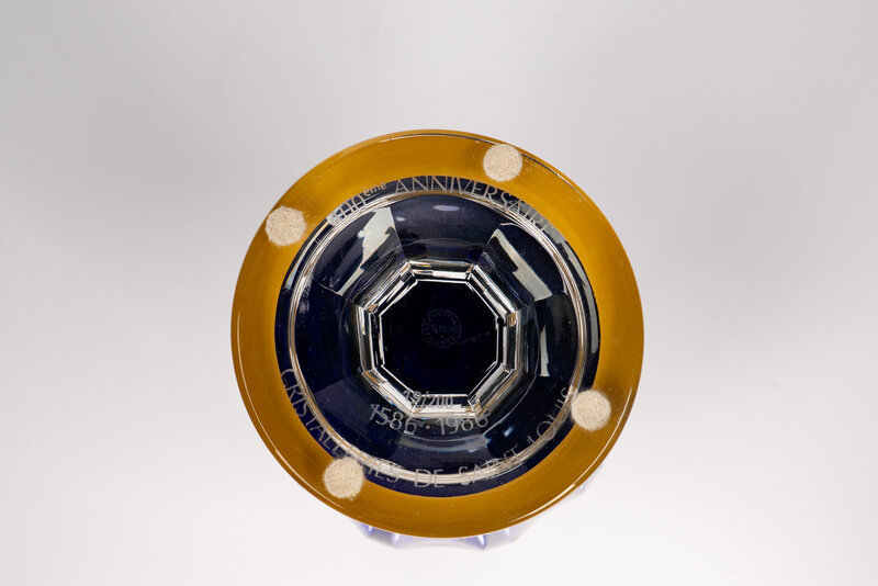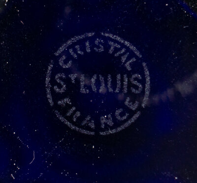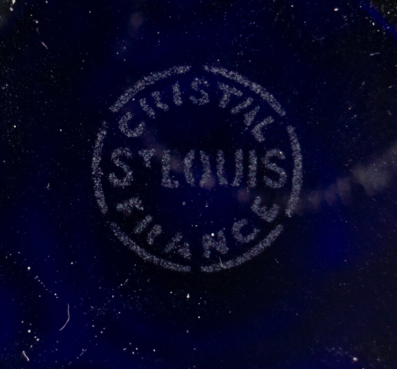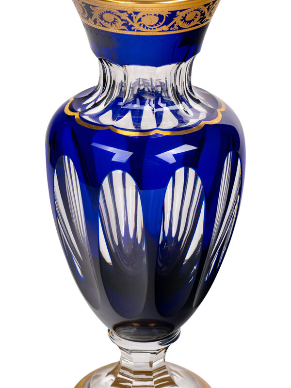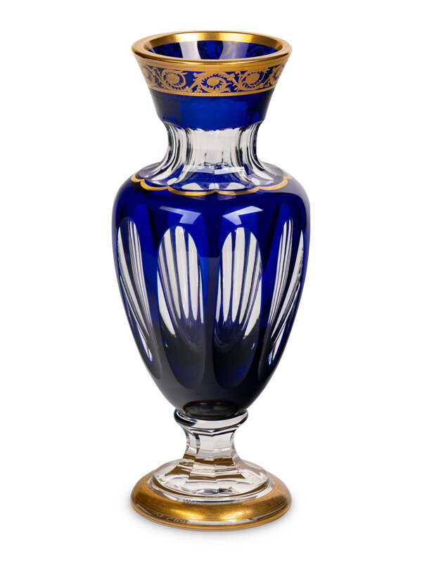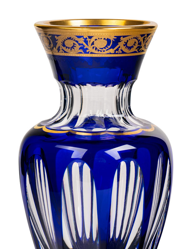 A Saint-Louis Gilt Decorated Cobalt Cut-to-Clear Glass Vase