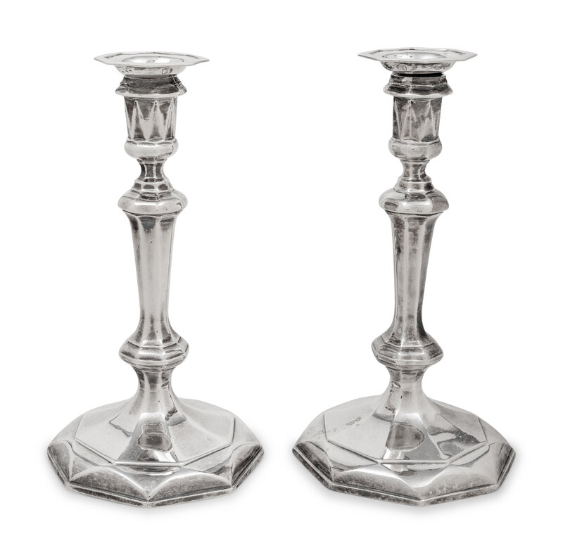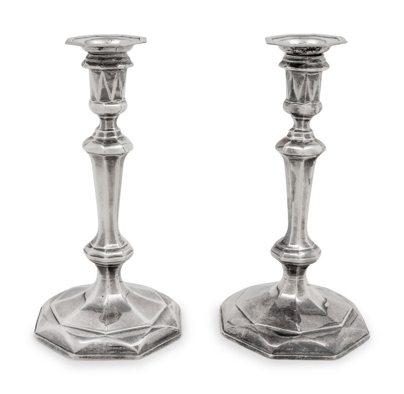A Pair of Queen Anne Britannia Silver Candlesticks