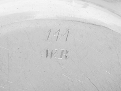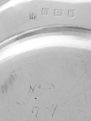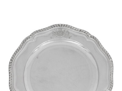 of typical form with shaped and gadroon decorated rim the border with an engraved coat of arms likely for Edward King (1726-1797), 1st Earl of Kingston.
