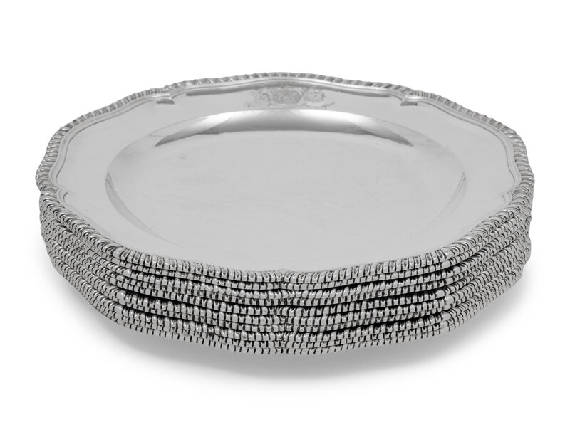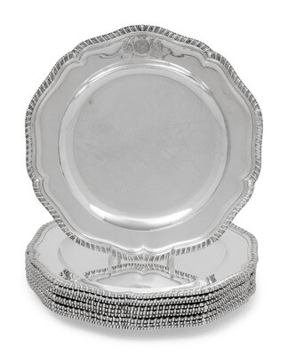 A Set of Ten George III Silver Dinner Plates
