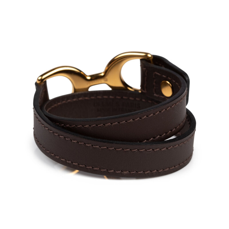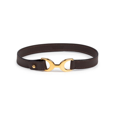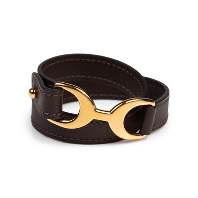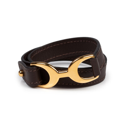 Pavane double tour bracelet in chocolate brown leather with gold-plated hardware.