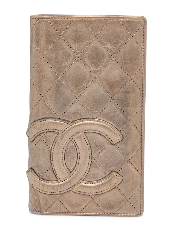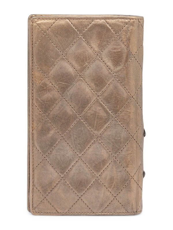 Chanel Cambon Wallet in quilted bronze leather with large CC logo applique.