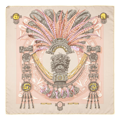 "Mexique" Scarf 90 in printed silk twill. Features rolled and hand-stitched edges. Includes box.