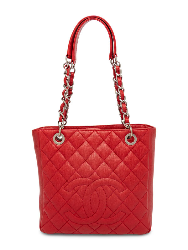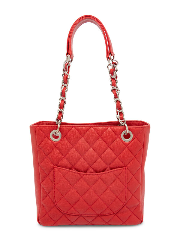 Chanel, Red Caviar Leather Petit Shopping Tote
