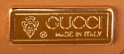 Details: gold-tone hardware, magnetic clasp closure, champagne faille lining, one interior zipper pocket