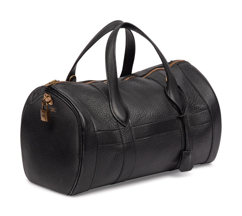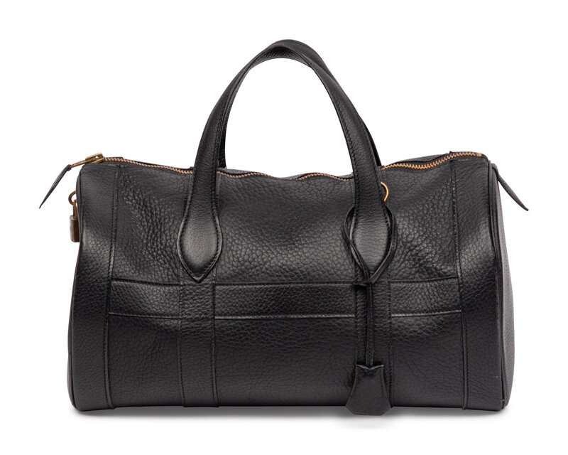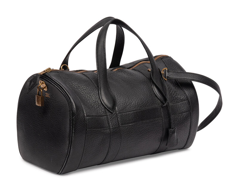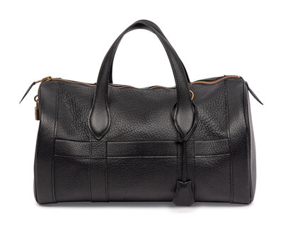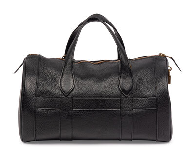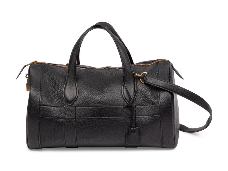 Convertible Boston Bag in Noir Clemence leather. Zipper closure. Flat leather handles and removable flat leather strap.