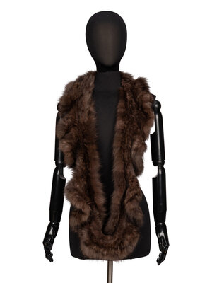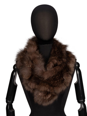 Infinity scarf in dyed brown sable fur. Slightly ruffled outer edges.