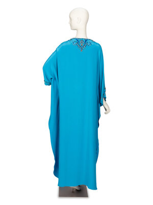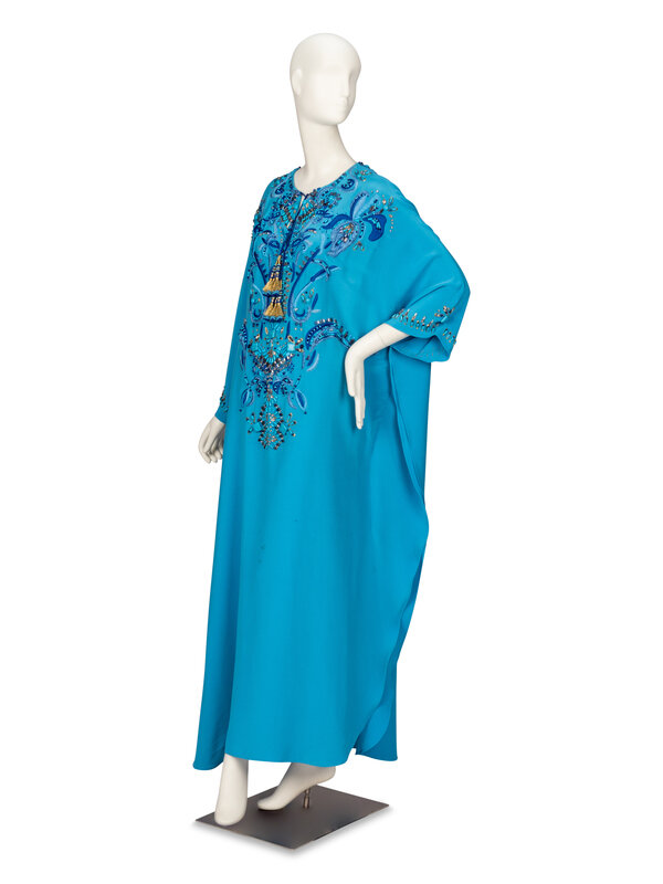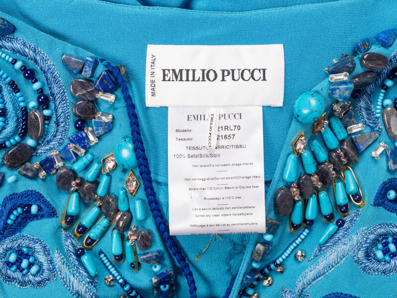 EMILIO PUCCI, CERULEAN EMBELLISHED KAFTAN WITH TASSELS