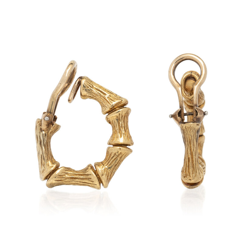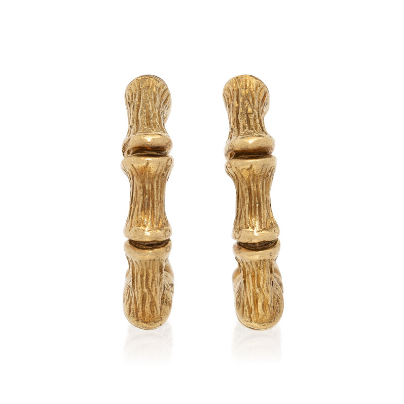 YELLOW GOLD BAMBOO HOOP EARRINGS