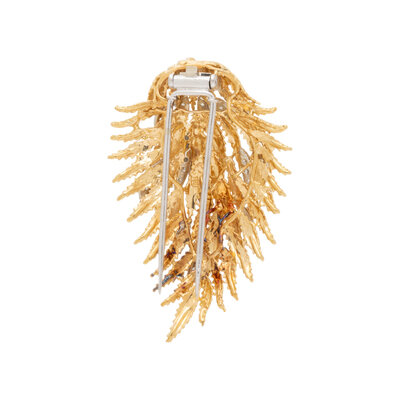 YELLOW GOLD AND DIAMOND FEATHER BROOCH