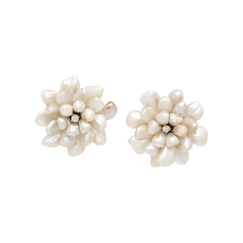 KESHI PEARL AND DIAMOND FLOWER EARRINGS