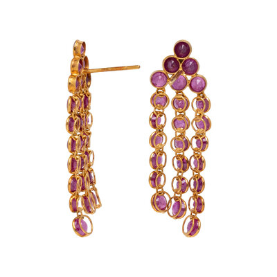 RUBY AND YELLOW GOLD FRINGE EARRINGS