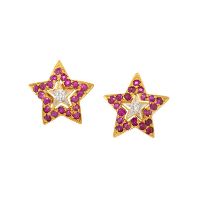 RUBY, DIAMOND, AND YELLOW GOLD STAR STUD EARRINGS