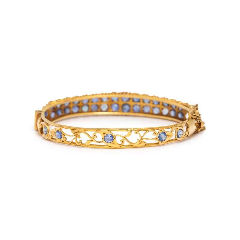 SAPPHIRE AND YELLOW GOLD BANGLE BRACELET
