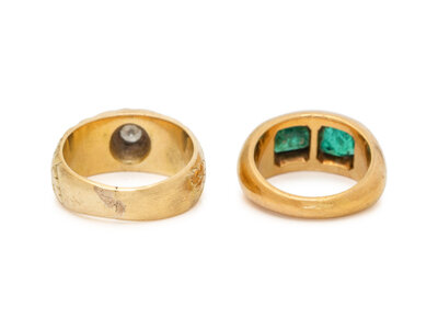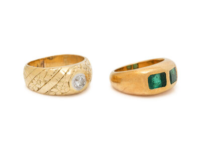 TWO YELLOW GOLD AND GEMSTONE RINGS
