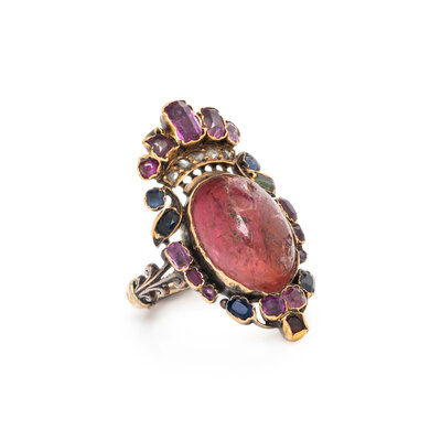 VICTORIAN, TOURMALINE AND MULTIGEM CROWN RING