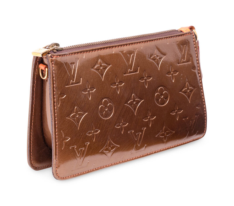 LOUIS VUITTON, BRONZE PATENT LEATHER HANDBAG