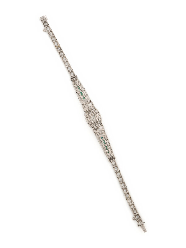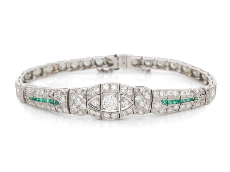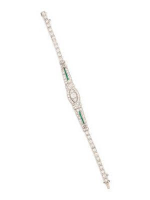 ART DECO, DIAMOND, EMERALD, AND PLATINUM BRACELET