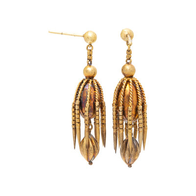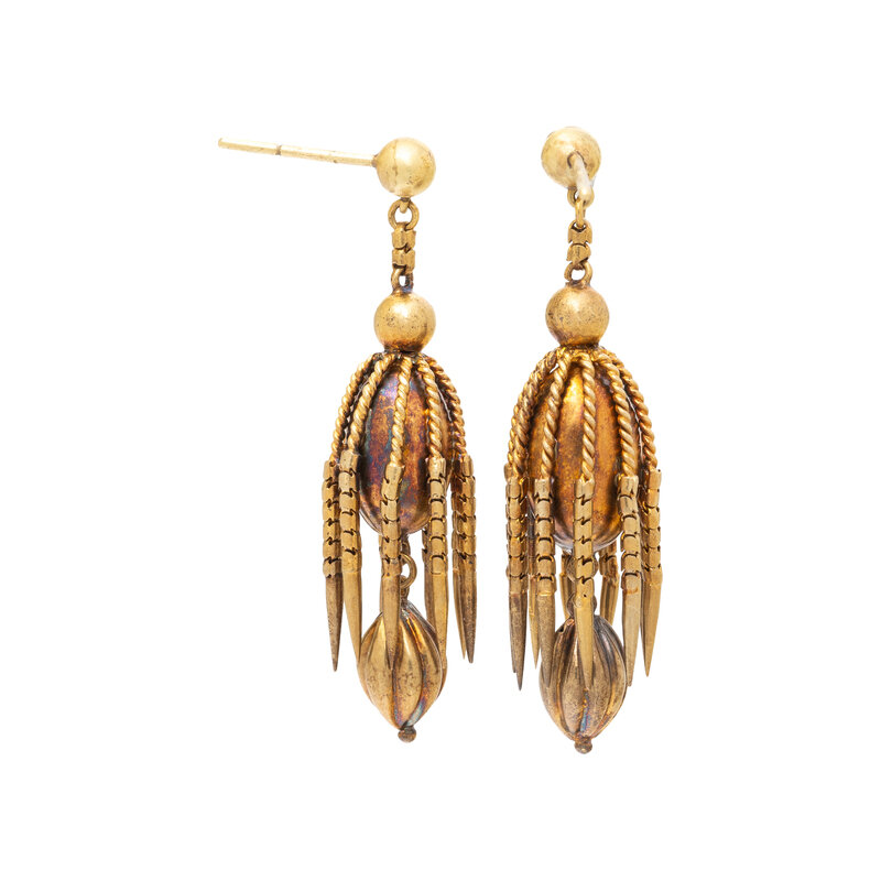 VICTORIAN, YELLOW GOLD FRINGE EARRINGS