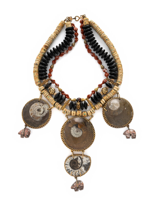 TONY DUQUETTE, HARDSTONE, BONE, AND AMMONITE FOSSIL NECKLACE