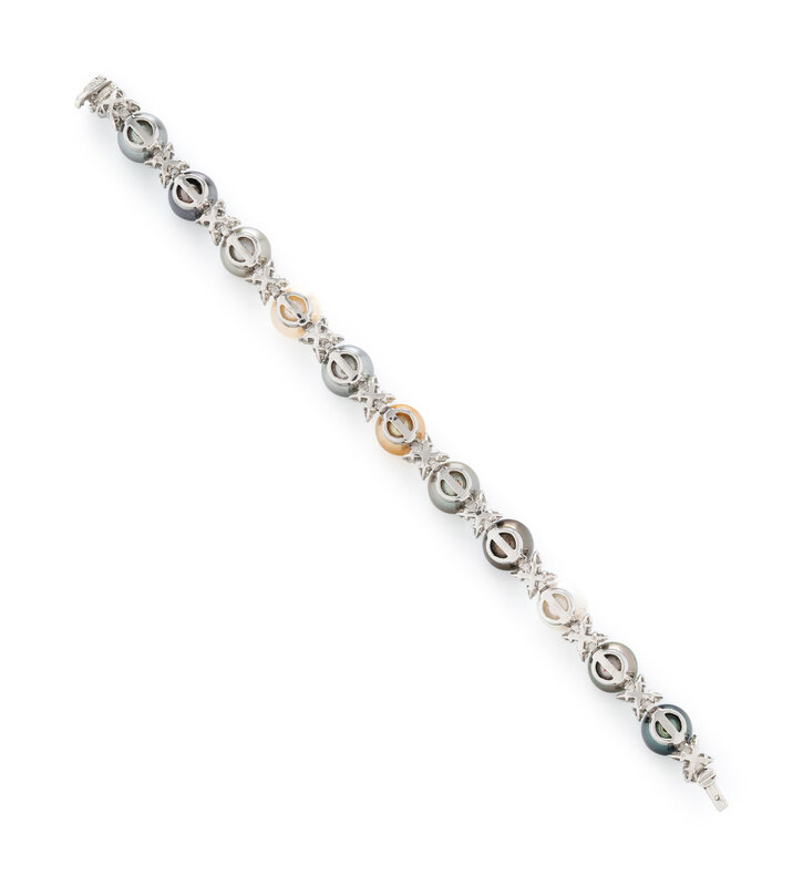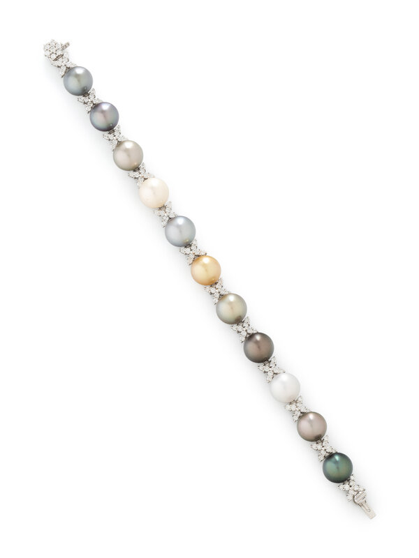 MULTICOLOR CULTURED PEARL, DIAMOND, AND WHITE GOLD BRACELET
