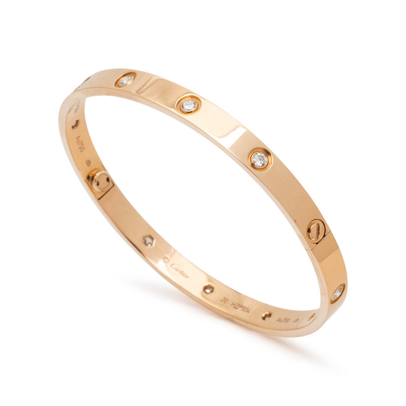 CARTIER, ROSE GOLD AND DIAMOND 'LOVE' BRACELET