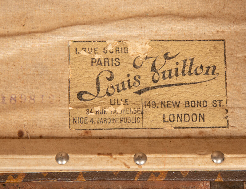 Label: " L. RUE SCRIBE / PARIS / LOUIS VUITTON / LILLE 34 RUE FAIDHERBE / NICE 4 JARDIN PUBLIC / 49. NEW BOND ST"