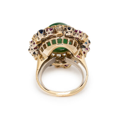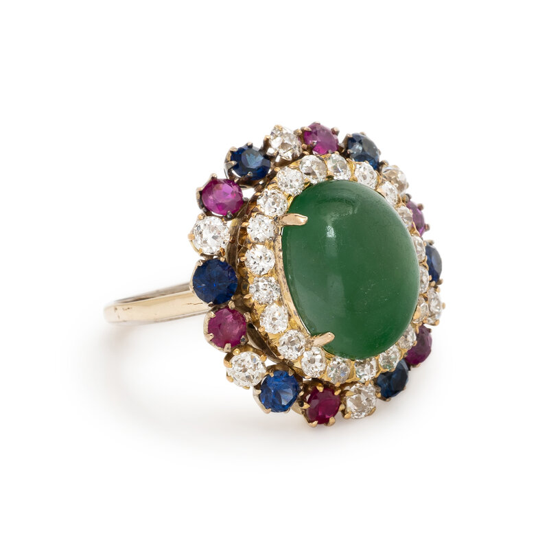 JADE, RUBY, SAPPHIRE, AND DIAMOND RING