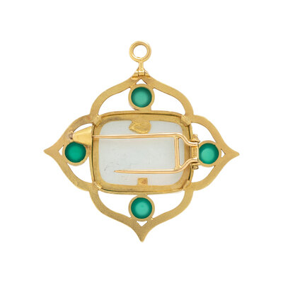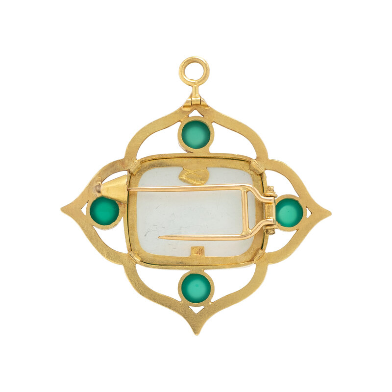 ELIZABETH LOCKE, VENETIAN GLASS, MOTHER-OF-PEARL, CHRYSOPRASE, AND YELLOW GOLD INTAGLIO BROOCH PENDANT