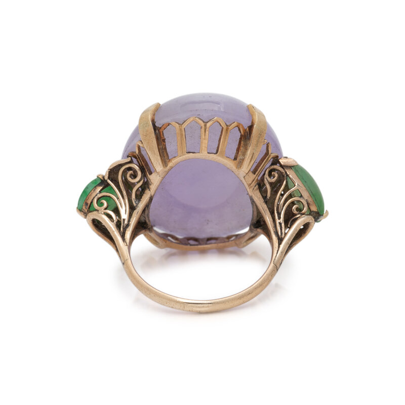 LAVENDER JADE, JADE, AND YELLOW GOLD RING