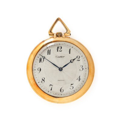 CARTIER, YELLOW GOLD OPEN-FACE POCKET WATCH