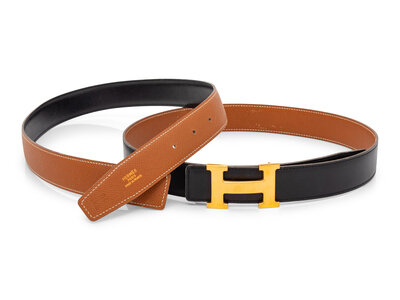 Hermès, Constance Gold Belt Buckle & Two Leather Belts