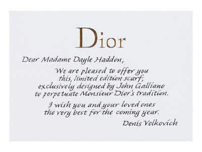 Christian Dior, Silk Scarf signed to Dayle Haddon from John Galliano