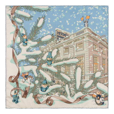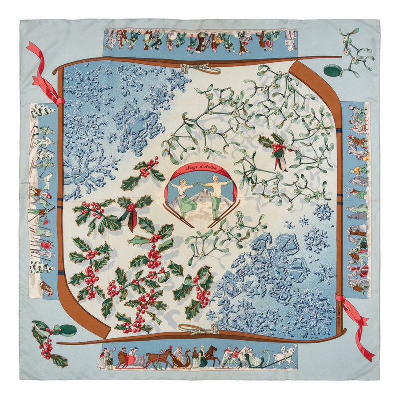 Hermès, Three Silk Scarves, Two Winter-Themed