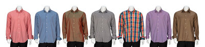 Button-up shirt in a multicolor plaid. Features French cuffs.