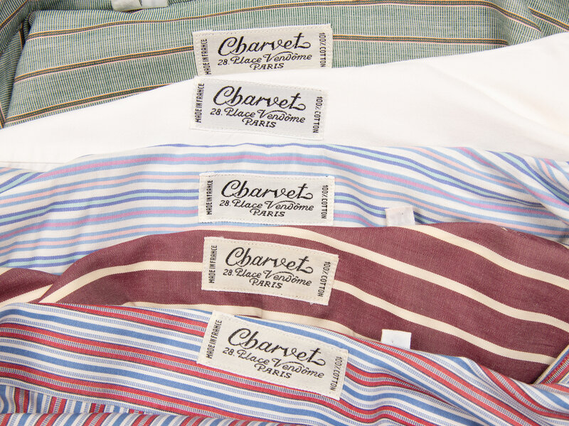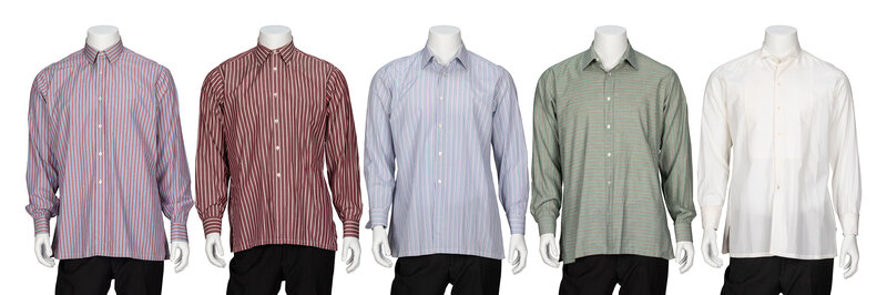 Tuxedo shirt in white cotton poplin with a piqué bib, winged collar, and French cuffs.