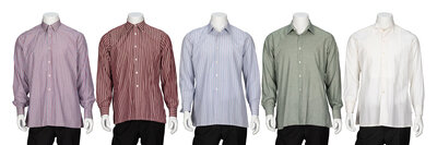 Button-up shirt in a pale green & orange striped cotton poplin.