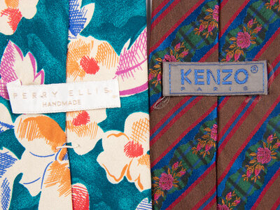 A lot of twenty-eight designer neckties by Kenzo & Perry Ellis.