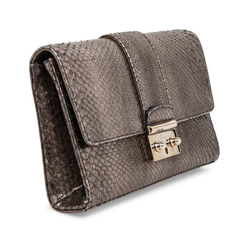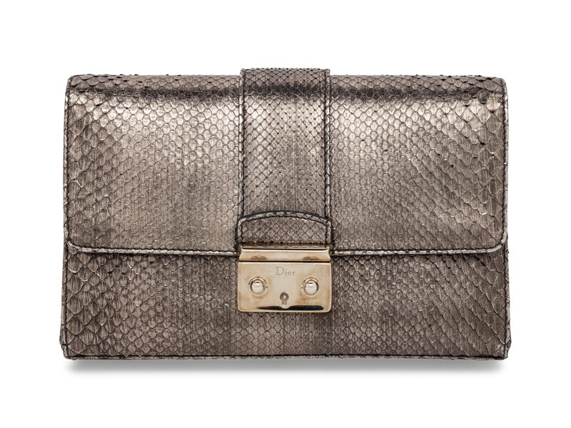 Dior, Metallic Pewter Snakeskin Clutch