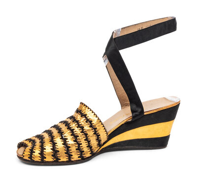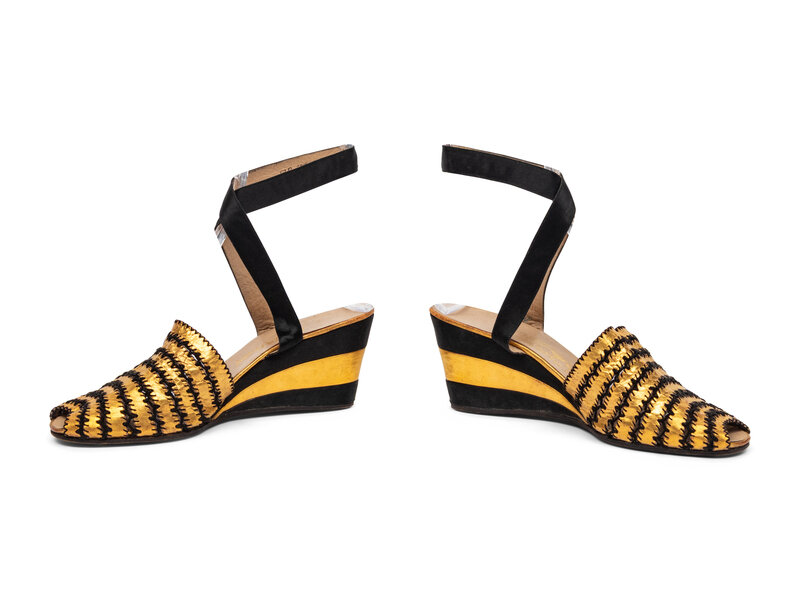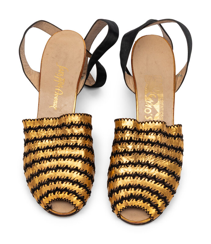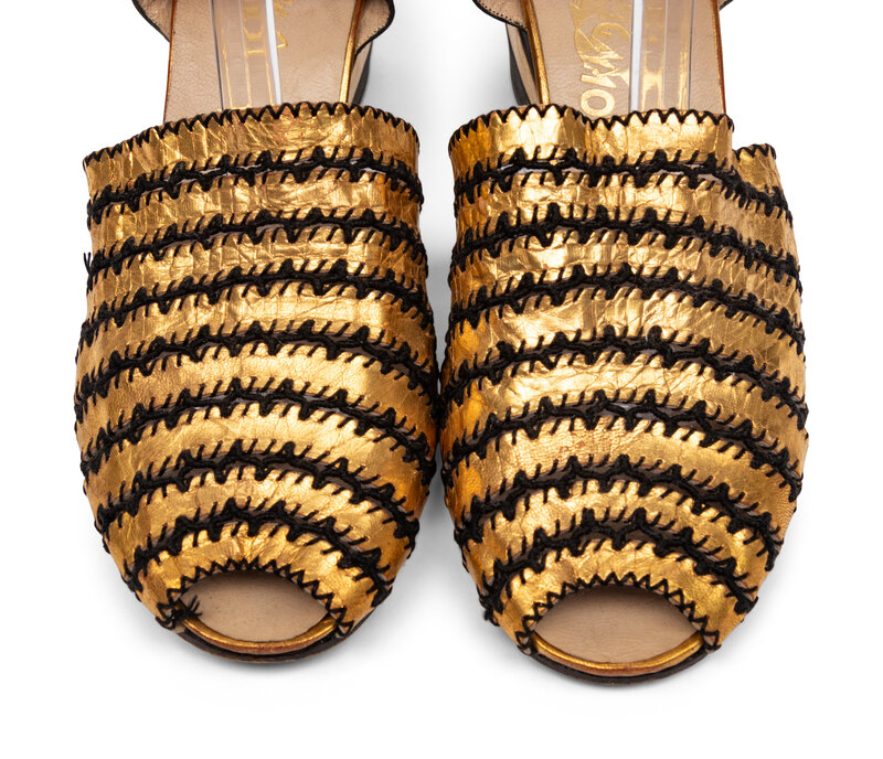 Salvatore Ferragamo, Gold Wedge Evening Sandals, 1940's
