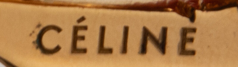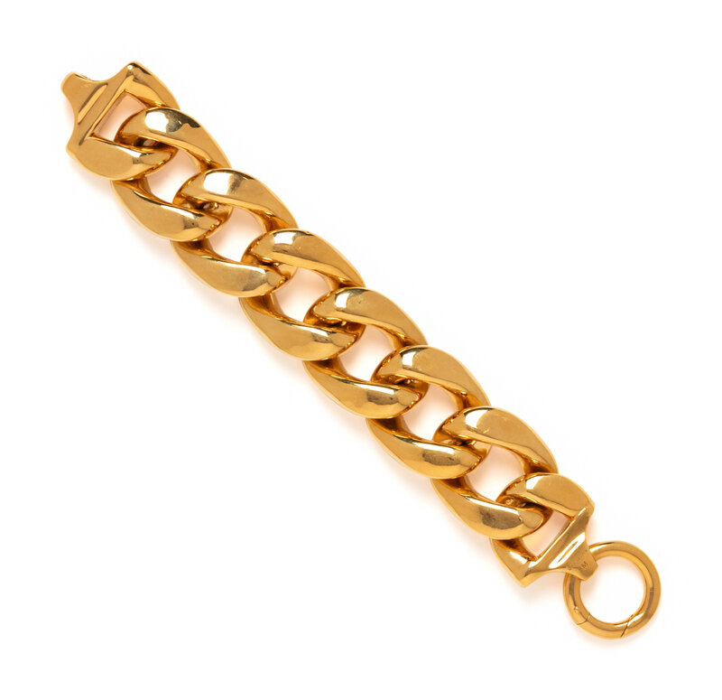 Oversized curb-link chain bracelet in gold-tone metal. Spring ring closure.