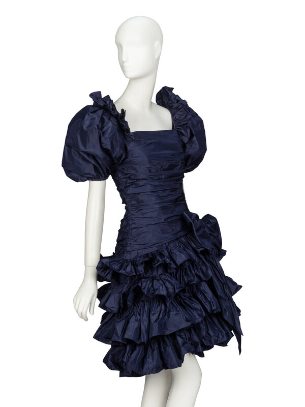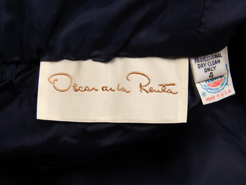 Oscar de la Renta, Navy Taffeta Ruffle Cocktail Dress, 1980s Runway Sample