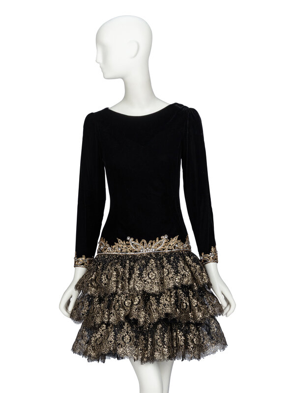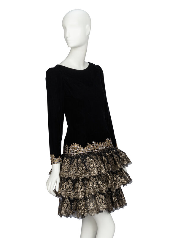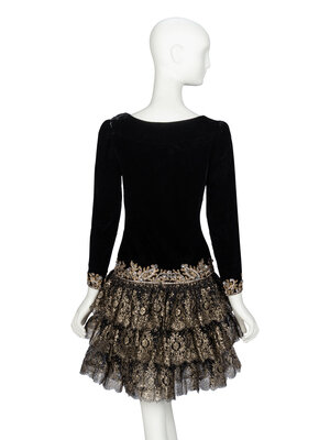 Oscar de la Renta, Velvet & Gold Lace Dress, 1980s Runway Sample